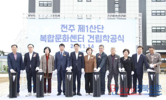 시는 14일 팔복동 제1산단 인근에서 우범기 전주시장을 비롯해 남관우 전주시의회 의장, 유관 기관·단체, 산단 내 근로자 등 100여 명이 참석한 가운데 복합문화센터 건립 시작을 알리는 착공식을 열었다.