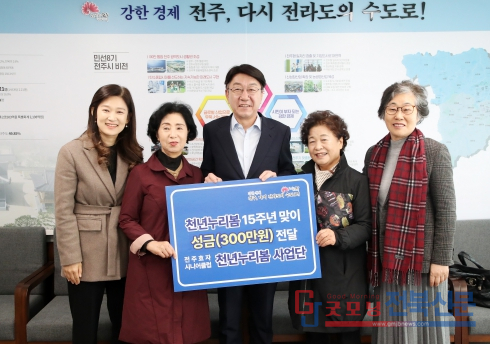 이번 후원은 천년누리봄 개업 15주년을 맞아 일자리에 참여 중인 12명의 수익금 중 일부를 어려운 이웃과 함께 나누며 그간의 사랑에 보답하기 위해 기획됐다.
