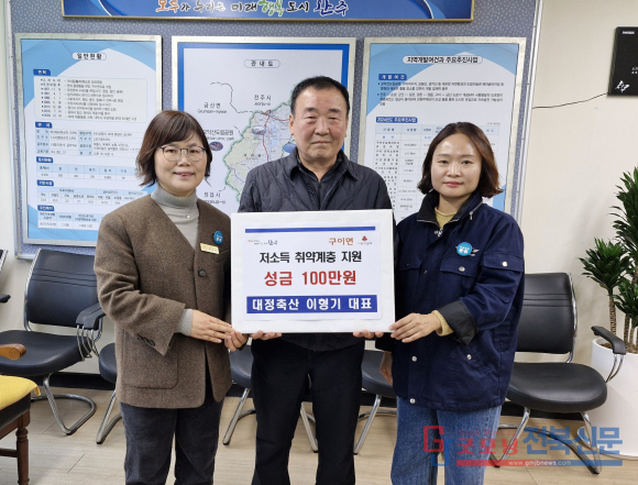 [굿모닝전북신문=오운석기자] 완주군 구이면 대정축산부산물 이형기 대표가 구이면에 성금 100만을 전달했다.