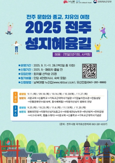 한편 ‘전주 성지혜윰길’ 프로그램은 문화체육관광부 소관 서부 내륙권 관광 진흥 사업의 일환으로 추진되며, 올해에 이어 내년에도 운영될 예정이다.