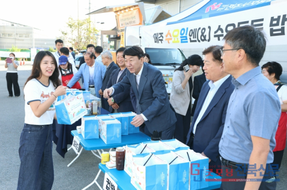 우범기 시장은 10일 이른 아침 ㈜유니온씨티 주차장(덕진구 신복로 105)을 찾아 산업단지 새벽 출근 노동자를 대상으로 아침 식사를 배부했다.