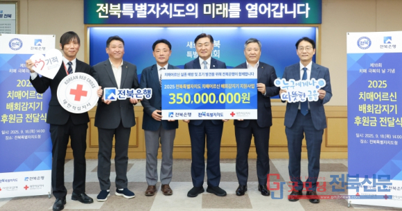 전북특별자치도는 18일 도청에서 전북은행이 배회감지기 1,000대 보급을 위해 총 3억5천만 원을 기탁했다고 밝혔다.