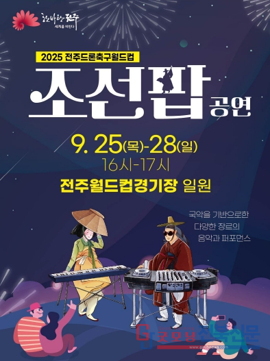 전주시는 오는 25일부터 28일까지 4일간 펼쳐지는 ‘전주드론축구월드컵’과 연계해 대회장인 전주월드컵경기장에서 전주조선팝공연을 선보인다고 23일 밝혔다.