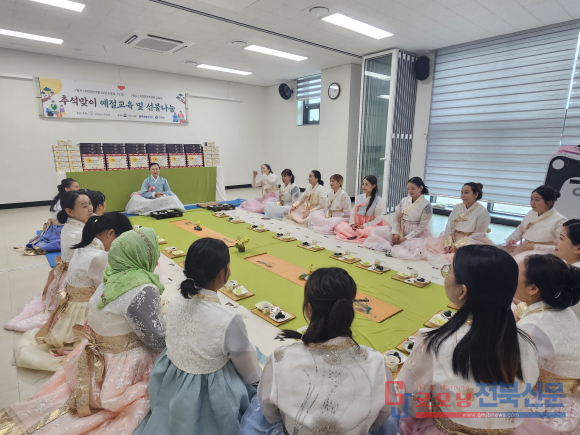 [굿모닝전북신문=최진수기자] 추석은 한국인에게 단순한 명절을 넘어 가족과 공동체가 뿌리 깊은 전통 속에서 화합하는 시간이다. 그러나 새로 이 땅에 발을 디딘 결혼이민자와 외국인 주민들에게는 낯설고 때로는 소외감을 주는 시기이기도 하다. 이런 가운데 고창군가족센터가 마련한 ‘추석 맞이 전통예절 교육 및 나눔 행사’는 그들에게 단순한 체험을 넘어선 진정한 ‘공존의 장(場)’이 됐다.