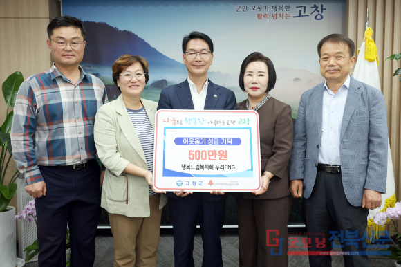 [굿모닝전북신문=최진수기자] 행복드림복지회 두리ENG(대표 김선례)가 지난 26일 고창군청을 찾아 제19회 전북특별자치도 장애인체육회의 성공적 개최를 위해 성금 500만원을 기탁했다. 이번 성금은 전북공동모금회를 통해 대회 준비와 운영에 직접 쓰일 예정이다. 기업의 사회적 책임을 실천하는 선례적 행보로, 지역사회와 함께 숨 쉬고자 하는 기업의 철학이 고스란히 묻어난다.