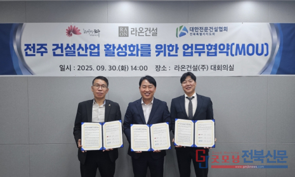 특히 라온건설㈜는 전주지역 내 주택사업이 처음인 만큼 이날 협약을 바탕으로 지역건설산업 활성화에 적극 협조할 것을 약속하기도 했다.
