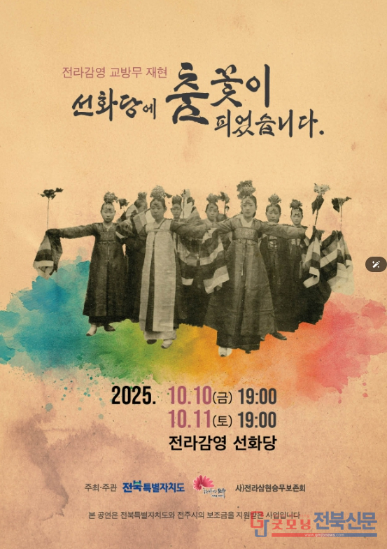 이번 공연은 조선시대 전라감영에서 실제 이루어졌던 교방무 연희 문화를 복원하고 재현한 특별 프로그램으로, 시는 다채로운 춤이 어우러진 전통 공연을 통해 우리 고유의 예술성과 문화유산을 현대적으로 풀어낸 무대를 선보일 예정이다.