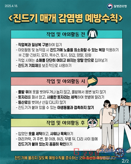 야외활동 후 발열, 오한 등의 증상이 나타나면 즉시 의료기관을 방문해 진료를 받아야 한다.