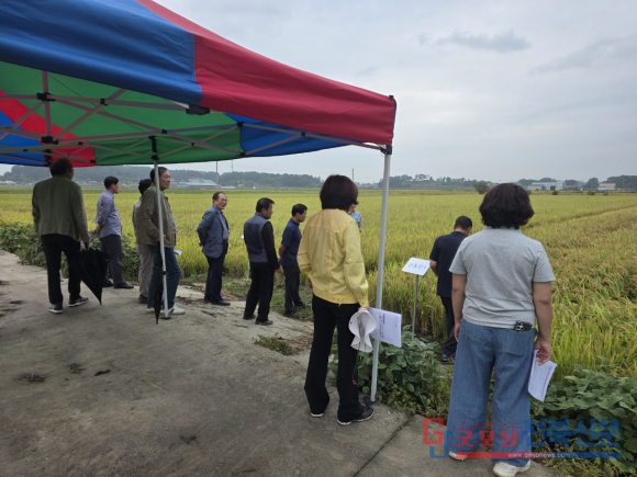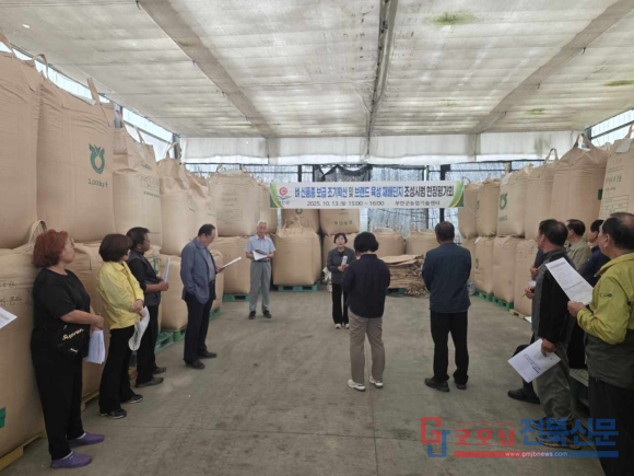 [굿모닝전북신문=최진수기자] 부안군이 벼 신품종 ‘신동진1호’의 조기확산을 통한 고품질 쌀 생산 기반 구축에 속도를 내고 있다. 지난 10월 13일, 부안군농업기술센터는 계화면 궁안리 일원에서 벼 신품종 조기확산 및 브랜드 육성 재배단지 조성 시범사업 현장평가회를 개최했다. 이날 행사는 부안군의 대표 쌀 브랜드 경쟁력을 높이기 위한 실질적 평가의 장으로, 농업인 단체, 선도농가, 기술센터 관계자 등 50여 명이 참석해 성황을 이뤘다.