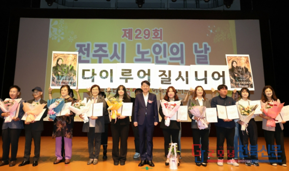 전주시와 대한노인회 전주시지회(지회장 홍성언)는 14일 전주학생교육문화관 공연장에서 우범기 전주시장과 최주만 전주시의회 부의장, 김두봉 대한노인회 전북특별자치도연합회장, 표창 수상자 등 1200여 명이 참석한 가운데 ‘제29회 전주시 노인의날 기념식’을 가졌다.