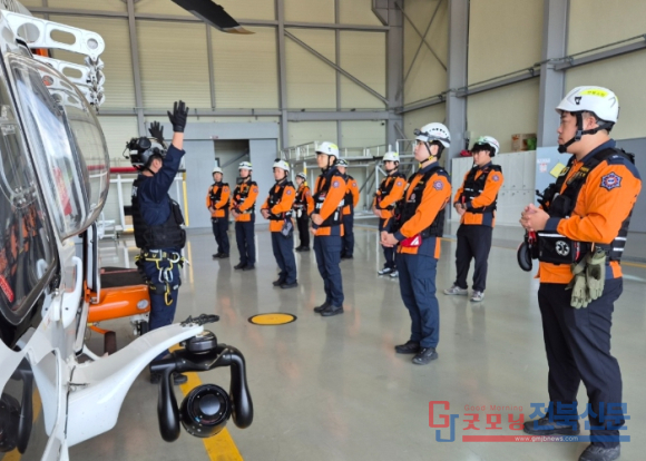 이번 훈련은 지난 15일 도내 소방서 구급대원 13명이 참여한 가운데 진행됐다. 훈련 과정에서는 ▲응급의료서비스 소방헬기 운용 절차 ▲현장-헬기 간 환자 인계 방법 ▲산악·수난사고 시 항공구조 절차 등을 집중적으로 다뤘다. 구급대원들은 실제 산악사고 현장을 가정해 들것 고정, 헬기 착륙지점 확보, 환자 인계 절차를 반복 숙달하며 실전 대응능력을 높였다.