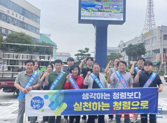 [굿모닝전북신문=최진수기자] 부안군이 공직사회의 투명성과 신뢰 회복을 위해 팔을 걷어붙였다. 지난 16일, 부안군청 민원과와 바르게살기운동 부안군협의회(회장 장대현)가 청렴한 조직문화 정착을 위한 ‘청렴 캠페인’을 공동으로 실시하며 지역사회에 건전한 공직문화를 확산시켰다.