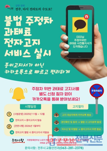 | ↑↑ 전주시, 주정차 과태료 전자고지 서비스 개시 |