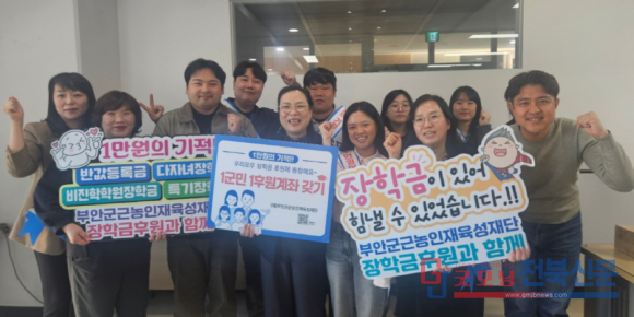 유안숙 사회복지과장은 “장학금 후원은 단순한 나눔이 아니라 부안의 미래를 함께 세우는 투자이자 연대의 표현”이라며, “작은 정성 하나하나가 모여 지역 교육의 희망을 밝히는 불씨가 될 것”이라고 강조했다.