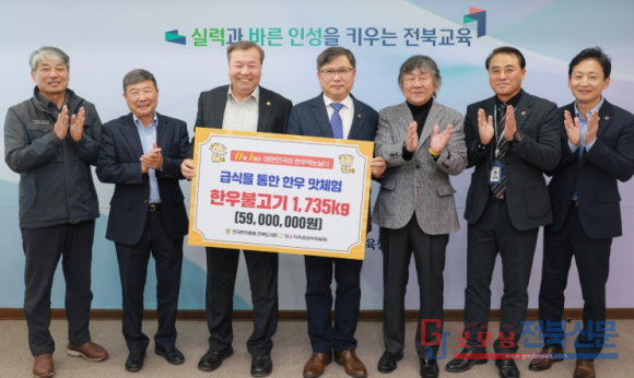 이날 (사)전국한우협회 전북도지회는 도내 100개교 1만2,835명 학생을 대상으로 한우 1,735kg(약 5,900만원 상당)을 기증했다.