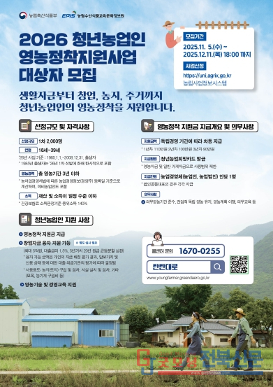 김신중 전북도 농생명정책과장은 “청년농업인이 성장할 수 있는 기반을 튼튼히 마련하는 것이 미래 농업 경쟁력의 핵심”이라며 “전북에서 새로운 농업의 길을 열어갈 청년들의 적극적인 참여를 기대한다”고 말했다.