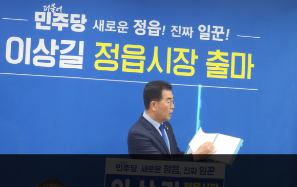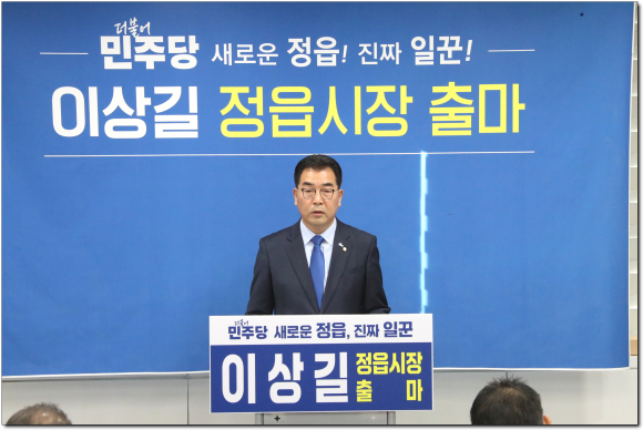 [굿모닝전북신문=오운석기자] 정읍시의회 이상길 의원(더불어민주당 중앙당 정책위부의장)이 10일 오전 11시 정읍시청 브리핑룸에서 기자회견을 갖고 "2026년 정읍시장 선거" 출마를 공식 선언했다.