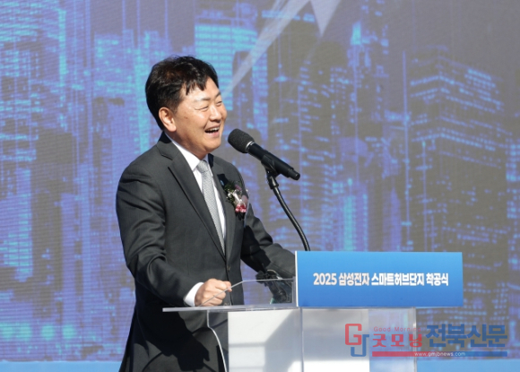| ↑↑ 10일 고창신활력산업단지(고창군 고수면 봉산리)에서 열린 2025 삼성전자 스마트허브단지 착공식- 김관영 지사 |