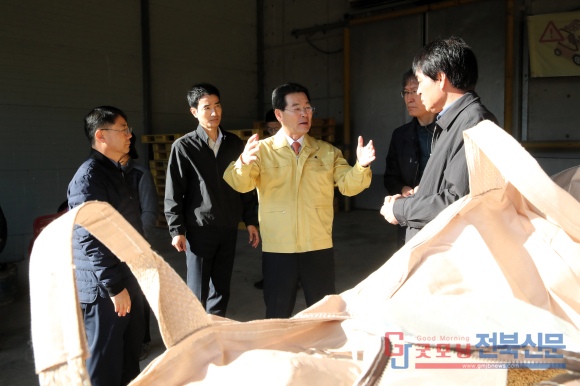 [굿모닝전북신문=최진수기자] 부안군의 농심을 보듬기 위한 권익현 부안군수의 발걸음이 한층 분주하다. 10일 권 군수는 하서면 대교농협 창고에서 진행된 2025년산 공공비축미 수매 현장을 직접 찾아 농업인들을 격려하고 관계자들의 노고를 치하했다. 수확기 내내 이어진 잦은 강우와 병해충 피해로 어려움을 겪고 있는 농가의 현실을 외면하지 않겠다는 의지를 몸소 보여준 것이다.