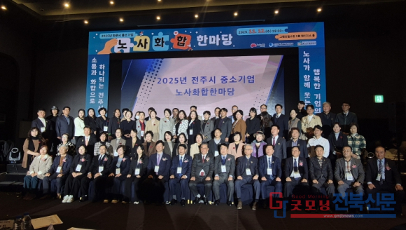 전주시는 12일 그랜드힐스턴 호텔에서 전주지역 중소기업 대표와 근로자 등 100여 명이 참석한 가운데 ‘2025 전주시 중소기업 노사화합 한마당’을 개최했다.