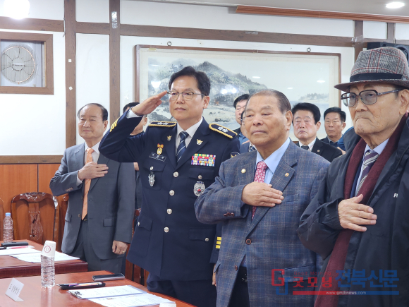 | 국기에 대한 경례, 좌로부터 한기만 회장, 김철문 청장, 김영구 고문, 강태용고문(사진_굿모닝전북신문) |
