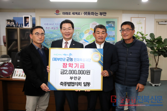 부안군 축종별협의회(회장 최관선)는 지난 25일 부안군 근농인재육성재단을 방문해 지역 청소년의 학업 지원과 교육복지 향상을 위해 장학금 200만원을 기탁했다.