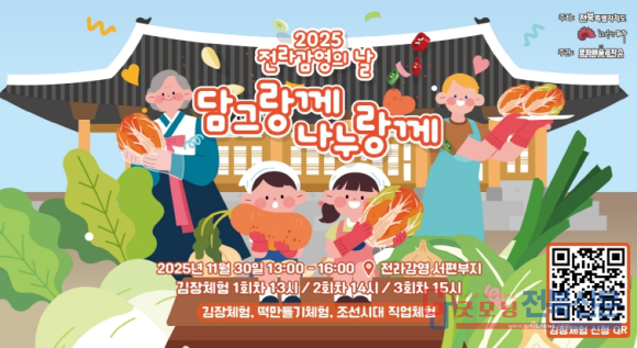 전주시 관계자는 “김장 문화는 단순한 음식 만들기를 넘어 이웃을 생각하고 공동체를 하나로 모으는 소중한 전통”이라며 “전라감영을 중심으로 시민 모두가 함께 전통문화를 즐기고 나눔의 가치를 실천하는 시간이 될 것”이라고 말했다.