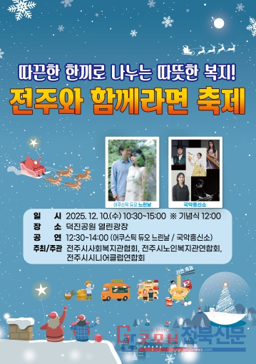 전주시종합사회복지관협회와 전주시노인복지관연합회, 전주시시니어클럽연합회 등 전주시 대표복지사업인 함께복지사업 참여기관들은 오는 10일 오전 10시 30분부터 오후 3시까지 덕진공원 열린광장에서 ‘전주와 함께라면 축제’를 개최한다고 밝혔다.