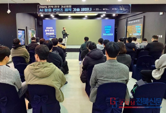 이날 행사는 1부 ‘첨단디지털 문화콘텐츠 육성공간 성과공유회’와 2부 ‘2025 전북·전주 가상융합산업 AI 활용 콘텐츠 제작 기술 세미나’로 나뉘어 진행돼 초기 창업자 육성부터 전문기술 고도화까지 이어지는 전주형 가상융합 생태계의 성과를 한자리에서 확인하는 시간으로 꾸며졌다.