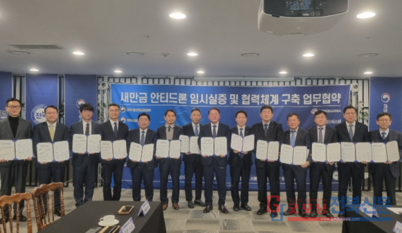 전북특별자치도는 17일 서울역 인근에서 ‘새만금 안티드론 임시실증 및 협력체계 구축’을 위한 업무협약을 체결했다.