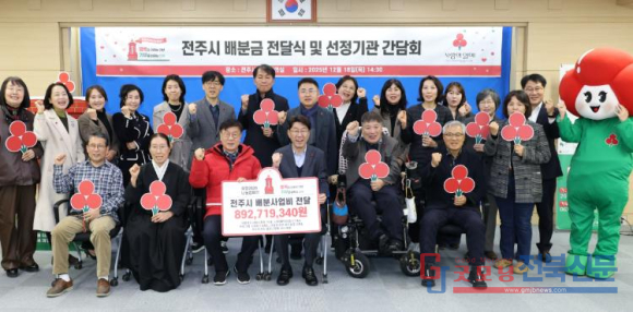이날 전주시에 전달된 배분금은 총 8억 9271만 9000원으로, 전주지역 취약계층과 사회복지시설의 기능 보강 등 다양한 복지사업에 활용될 예정이다.