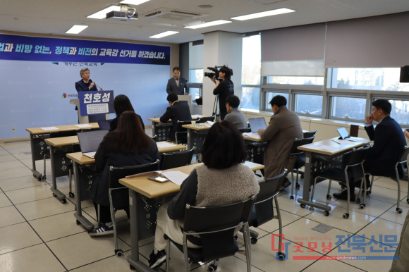 [굿모닝전북신문=오운석기자] 전북교육감 선거에 나선 천호성 교육감 입지자가 불법과 비방을 배제한 정책 중심 선거를 공식 선언했다.