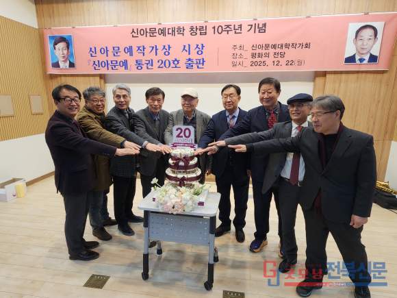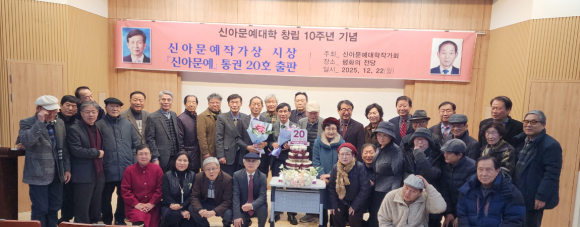 [굿모닝전북신문=오운석기자] 신아문예대학작가회(회장 김용권)는 지난 22일 신아문예대학 문우와 문학인 등 100여 명이 참석한 가운데 정기총회와 작가상 시상식, 통권 제20호 『신아문예』 출판기념회를 성대하게 개최했다.