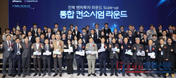 도는 23일 전주 라한호텔에서 ‘전북 벤처투자 라운드 SCALE-UP 통합 컨소시엄’ 행사를 개최하고, 벤처펀드 누적 결성액이 1조 184억 원을 기록했다고 밝혔다. 이날 행사에는 김관영 전북자치도지사와 이대희 한국벤처투자 대표이사, 유동준 엔젤투자협회 부회장을 비롯해 정책 출자기관장, 투자사(VC·AC), 스타트업 대표 등 200여 명이 참석했다.