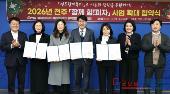 시와 전주시시니어클럽연합회는 24일 전주시장실에서 우범기 전주시장과 서원·전주·효자시니어클럽 등 3개 수행기관 관장이 참석한 가운데, ‘전주함께복지’ 시리즈의 일환인 ‘전주 함께힘!피자’ 확대 협약을 체결했다.
