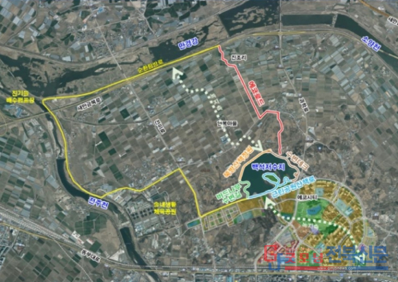| ↑↑ 전주시, 장기간 정체된 도시 현안 해법 찾아 (만경강~백석제 생태탐방로 조성사업 위치도) |