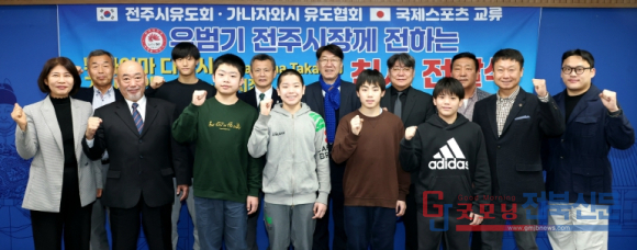 시는 국제 자매도시인 일본 가나자와시 유도협회 선수단이 5일 전주시청을 방문해 우범기 전주시장을 접견하고, 무라야마 다카시 가나자와 시장의 친서를 전달했다고 밝혔다.