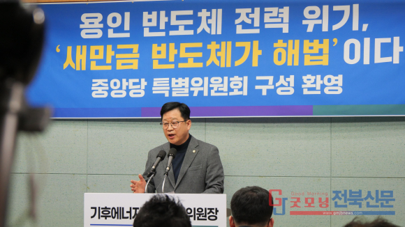 [굿모닝전북신문=오운석기자] 국회 기후에너지환경노동위원장인 안호영 더불어민주당 의원이 용인 반도체 클러스터의 전력·용수 문제를 국가적 과제로 규정하며, 반도체 산업의 지방 분산 배치와 함께 남부권 반도체 벨트에 전주를 포함해야 한다고 주장했다.