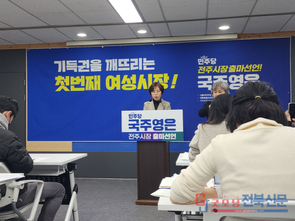[굿모닝전북신문=오운석] 국주영은 전 전북특별자치도의회 의장이 16일 전주시청 브리핑룸에서 기자회견을 열고, 오는 지방선거에서 전주시장 출마를 공식 선언했다.