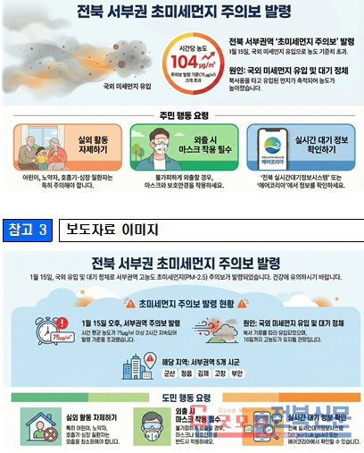 | ↑↑ 전북 서부권역 초미세먼지 주의보 발령 |