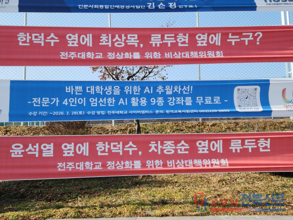 “이사장 총알받이 되지 말자” 전주대 캠퍼스에 나붙은 날 선 문구들은 단순한 감정적 대응이 아니다. 비대위가 주장하는 ‘대학 사유화’와 ‘인사 독점’의 구조적 문제를 짚어본다.