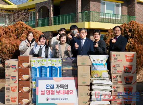 전북교육청은 민족 최대의 명절인 설을 맞아 이웃과 따뜻한 정을 나누기 위해 이날부터 도내 사회복지시설 15개소에 쌀, 라면, 화장지, 누룽지, 김 등의 위문품을 전달할 예정이다.