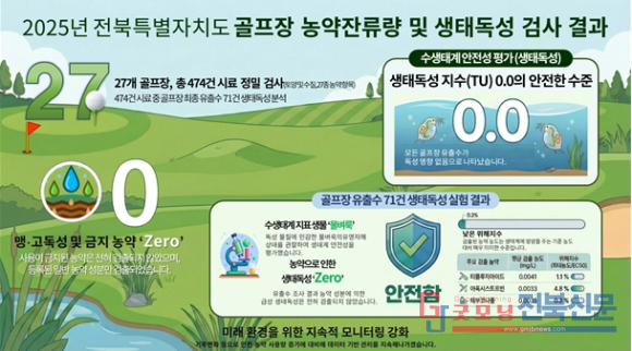 전경식 전북자치도 보건환경연구원장은 “과학적인 검사를 통해 도내 골프장과 주변 환경의 안전성을 지속적으로 확인하고 있다”며 “앞으로도 친환경 생활체육시설 환경 조성을 위해 선제적인 관리체계를 강화해 나가겠다”고 말했다.