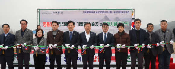 진안군은 3월 6일 오후 2시 진안읍 단양리 산 29번지 일원(진안IC 앞)에서 「명품홍삼 집적화단지」 기반조성 준공 및 판매시설 기공식을 개최했다.