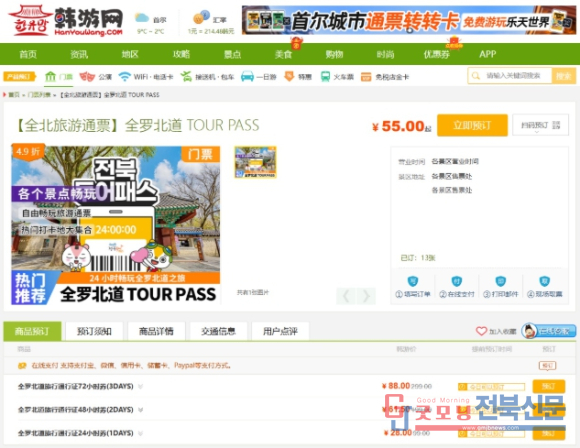 | ↑↑ 전북투어패스 한유망 판매 이미지 |