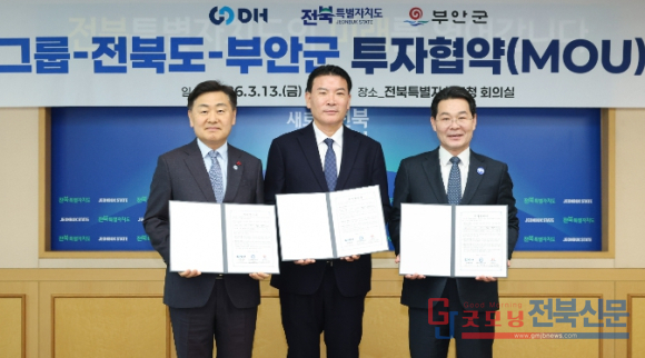 도는 13일 도청에서 DH그룹과 부안 제3농공단지(투자 면적 10만 1,836㎡) 일원에 피지컬AI·방산·수소 산업 제조기지를 조성하는 내용의 투자협약(MOU)을 체결했다. 협약식에는 김관영 전북자치도지사와 이정권 DH그룹 회장, 권익현 부안군수 등이 참석했으며, 협약 체결 후 지역 상생 협력 방안에 대한 의견을 나눴다.