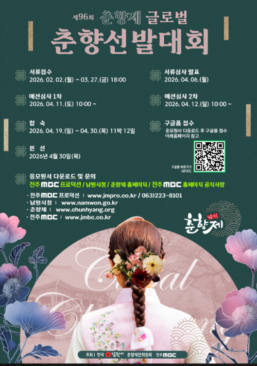 남원시 관계자는 “이번 글로벌 춘향선발대회는 춘향의 가치를 세계로 잇는 소중한 문화 가교가 될 것“이라며, ”확대된 기회 속에서 춘향의 멋과 정신을 세계 무대에 펼쳐 보일 재능 있는 분들의 많은 관심과 참여를 기대한다”고 전했다.