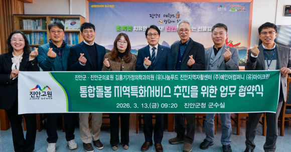 김대환 사회복지과장은 “이번 협약은 어르신들이 살던 곳에서 건강하고 안전하게 노후를 보내실 수 있도록 지역사회가 함께 힘을 모으는 의미 있는 출발점”이라며 “앞으로도 민·관 협력을 통해 진안군만의 특색 있고 촘촘한 돌봄 안전망을 구축해 나가겠다”고 말했다.