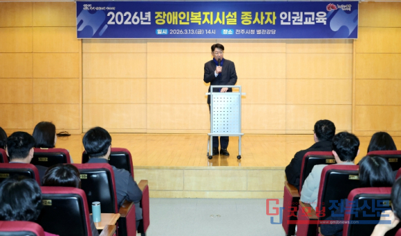 시는 13일 오후 2시, 전주시청 별관 15층 강당에서 전주지역 34개 장애인복지시설 종사자 150여 명을 대상으로 ‘2026년 장애인복지시설 종사자 인권교육’을 실시했다.