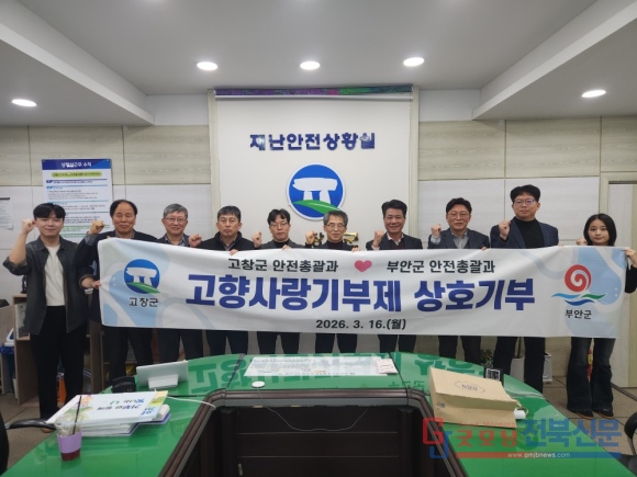 부안군 안전총괄과와 고창군 안전총괄과 직원들이 고향사랑기부제의 활성화와 지역 간 상생발전을 위해 뜻을 모았다. 양 기관은 지난 16일 고향사랑기부금 상호 기부에 동참하며, 지역을 살리는 따뜻한 연대의 행보를 보여줬다.